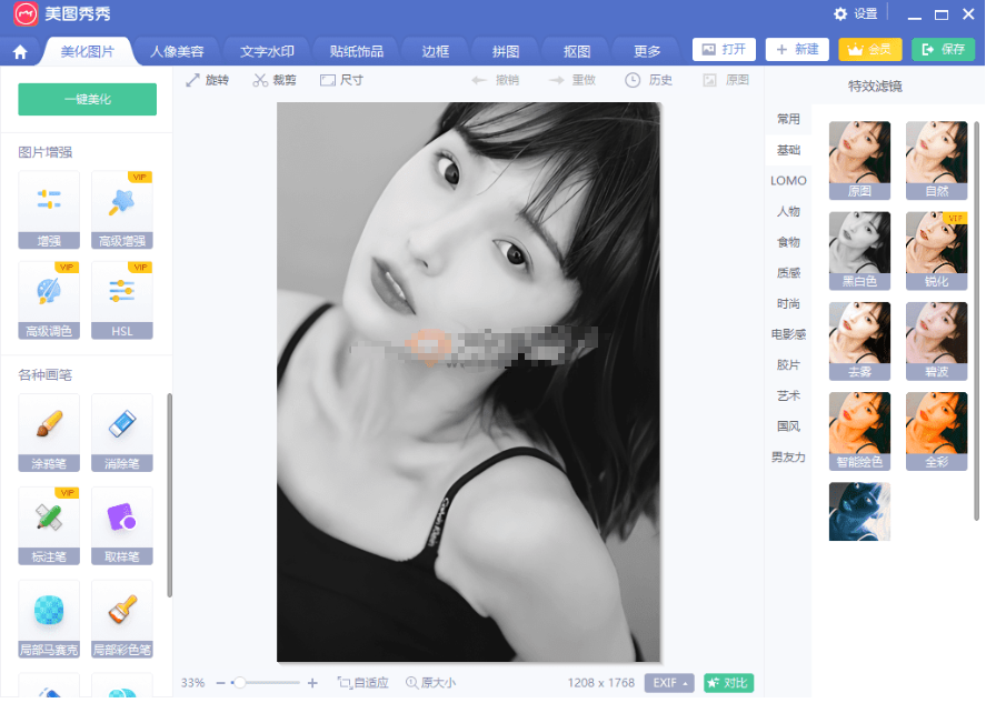 - 其包括美化图片、人像美容、文字水印、贴纸饰品、边框、抠图等功能