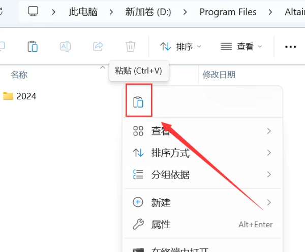 23.鼠标右击【2024】文件夹选择【复制】。