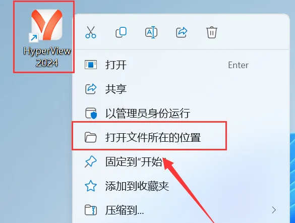 25.鼠标右击【HyperView 2024】图标选择【打开文件所在的位置】。