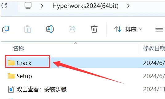 22.打开安装包解压后的【Hyperworks2024(64bit)】文件夹,双击打开【Crack】文件夹。