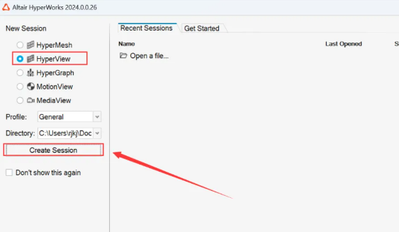 30.选择需要使用的软件(如:HyperView),点击【Create Session】。
