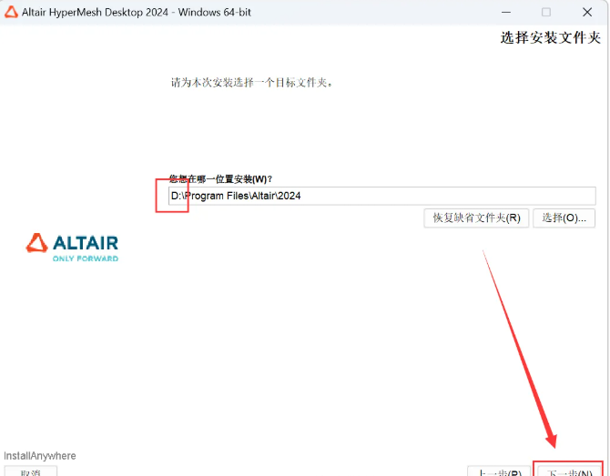 15.修改路径地址中的第一个字符C可更改安装位置(如:把C改为D软件将安装到D盘),点击【下一步】。
