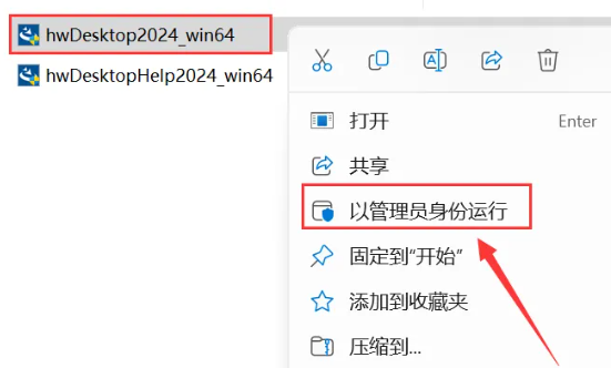 9.鼠标右击【hwDesktop2024_win64】选择【以管理员身份运行】。