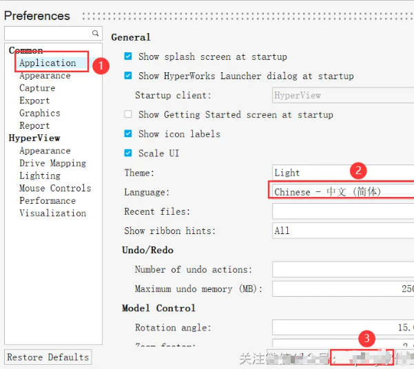 32.中文修改:①点击【Application】②选择【中文简体】③点击【OK】(重启软件即是中文)
