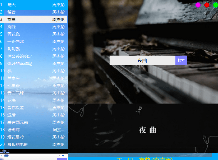 - 界面很古老,但是不影响支持,支持搜索音乐
