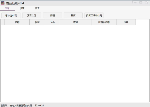 软件使用非常简单,把文件拖入软件中,然后点【压缩】或者【解压】即可。