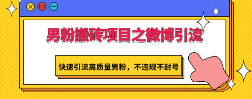 男粉搬砖项目之微博引流,快速引流质量男粉,不违规不封号